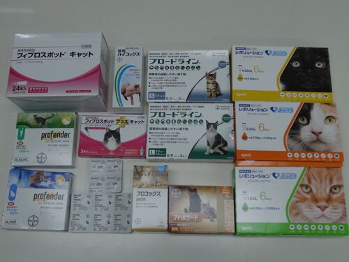 気になる季節 ノミやマダニが気になる季節になってきました。外猫が多い当診療所では、ノミ以外にも様々な寄生虫に感染している猫ちゃんが来院します。写真にある駆虫薬でほとんど対応できますが、ノミ・マダニ駆除薬以外のものでは時に在庫を切らしてしまう…